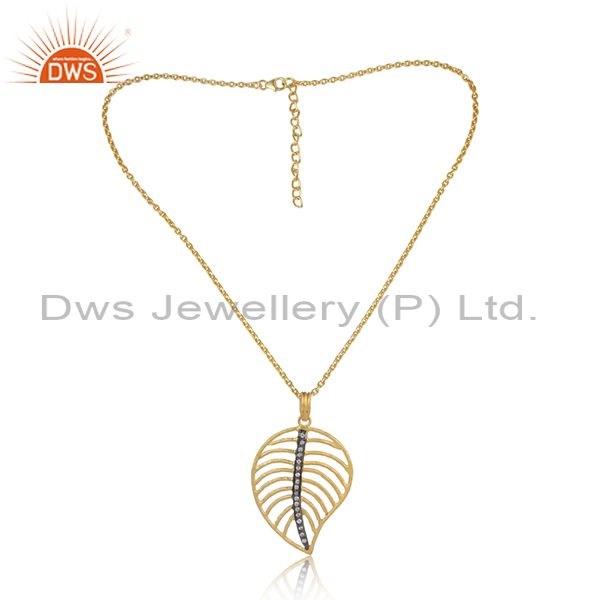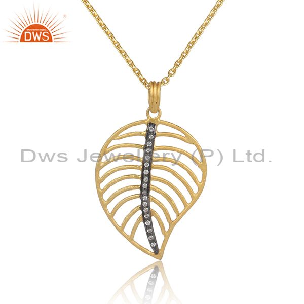 Leaf Shaped CZ Pendant And Gold On Silver Statement Necklace