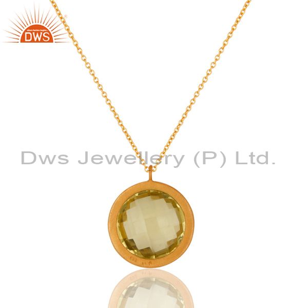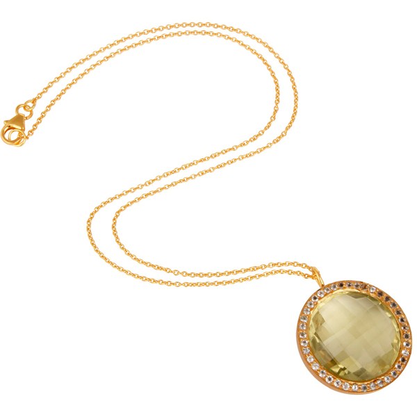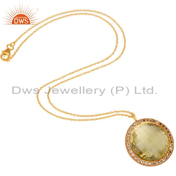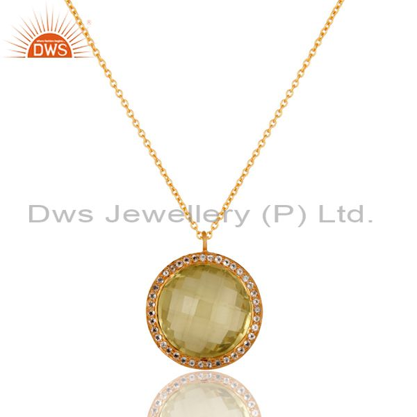 Lemon Topaz And White Topaz 18K Gold Plated Sterling Silver Pendant Necklace