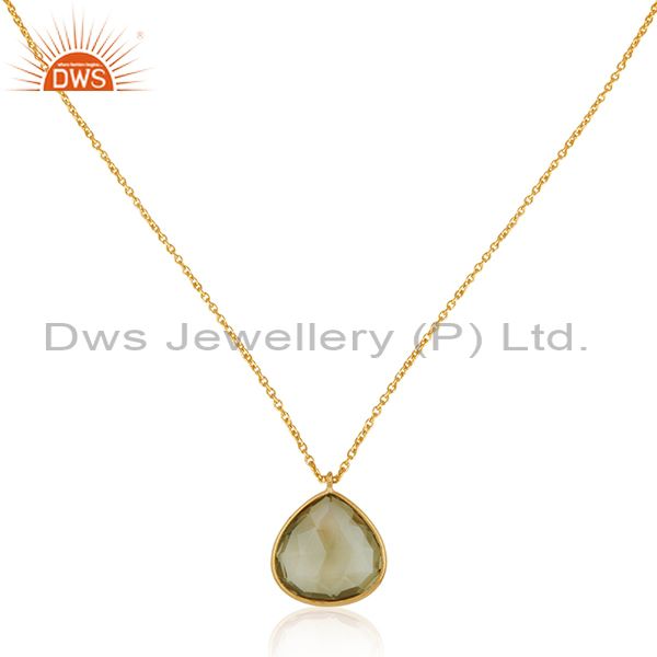 Lemon Topaz Gemstone Gold Plated 925 Silver Chain Pendant Manufacturer