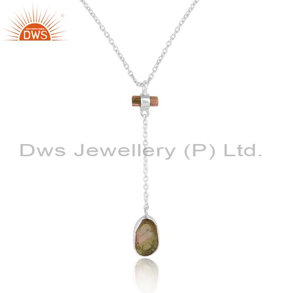 Longing Tourmaline Gemstone Sterling Fine Silver Chain Necklace