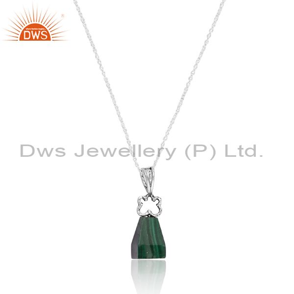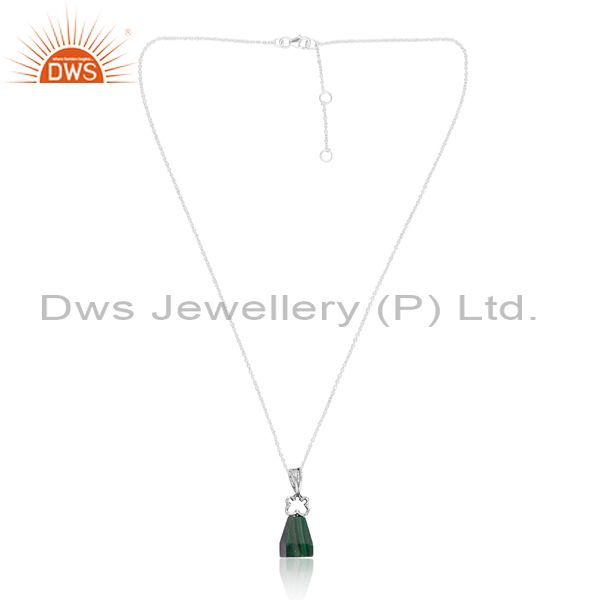 Malachite Frustum Pendant And Oxidized Sterling Silver Chain