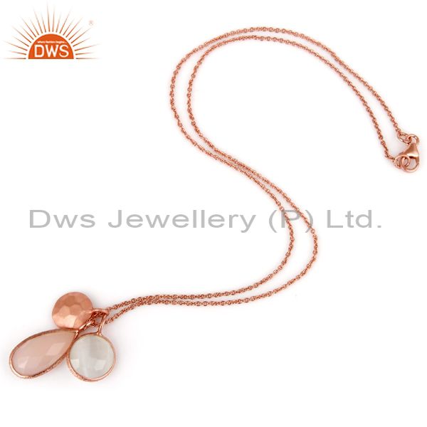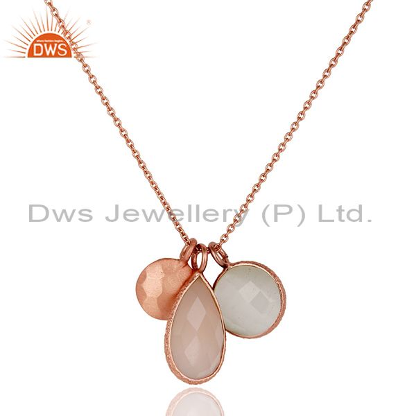 Moonstone Rose Chalcedony 18K Rose Gold Plated Sterling Silver Chain Pendant