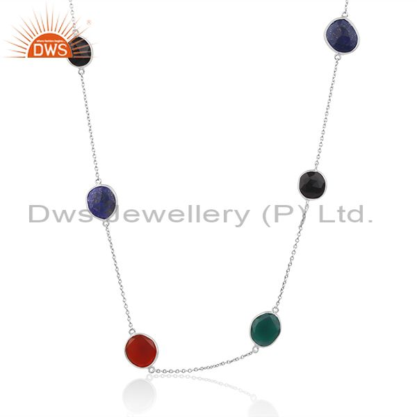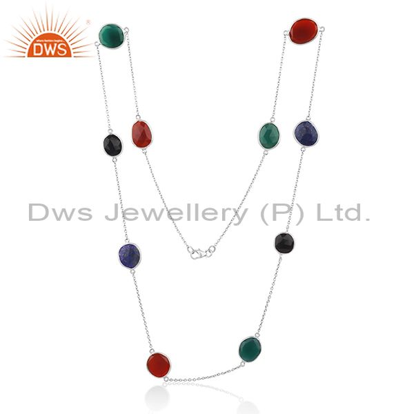 Multi Colour Gemstone Fine Sterling Silver Chain Necklace Jewelry