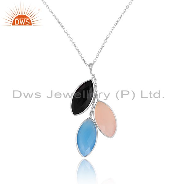 Multi Gemstone Designer Sterling Fine Silver Womens Chain Pendant