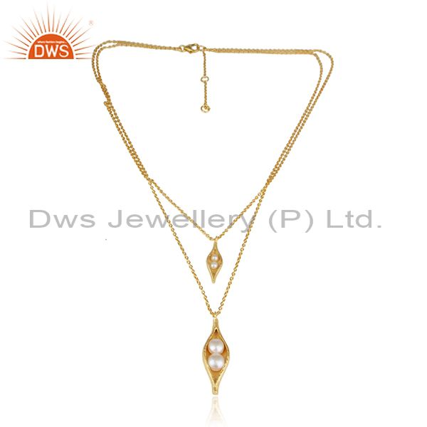 Multi Row Seedpod Pearl Necklace in Yellow Gold on Silver 925