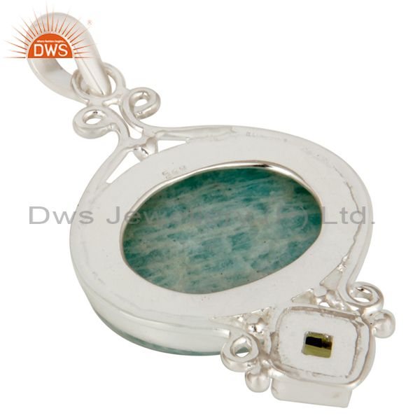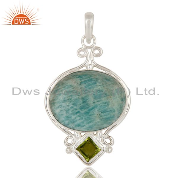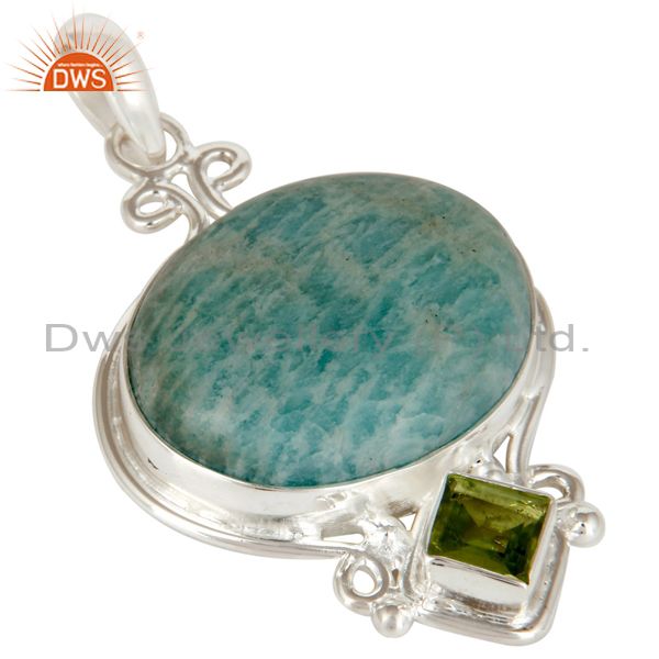 Natural Amazonite And Peridot Solid Sterling Silver Gemstone Designer Pendant