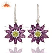 Natural Amethyst And Peridot Solid Sterling Silver Solitaire Pendant