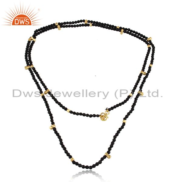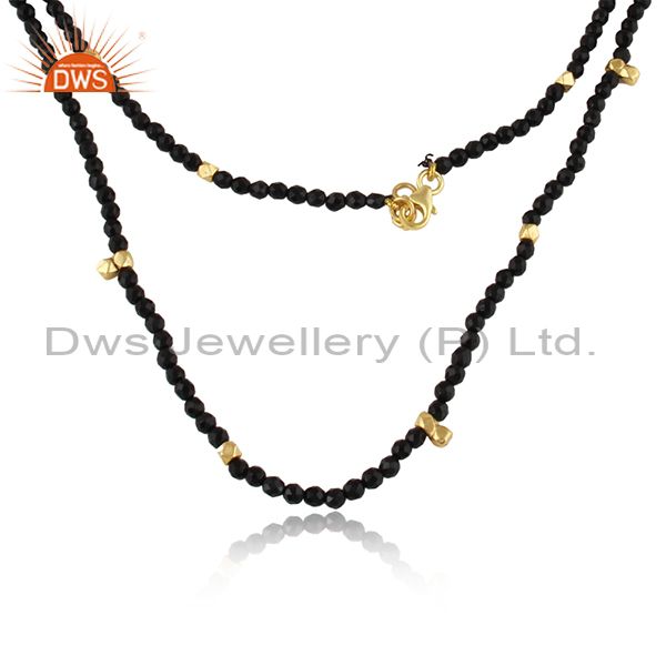 Natural Black Onyx Beaded Gemstone Gold Plated Silver Necklace