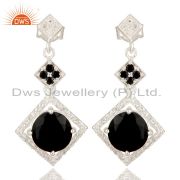 Natural Black Onyx Prong Set 925 Sterling Silver White Topaz Pendant