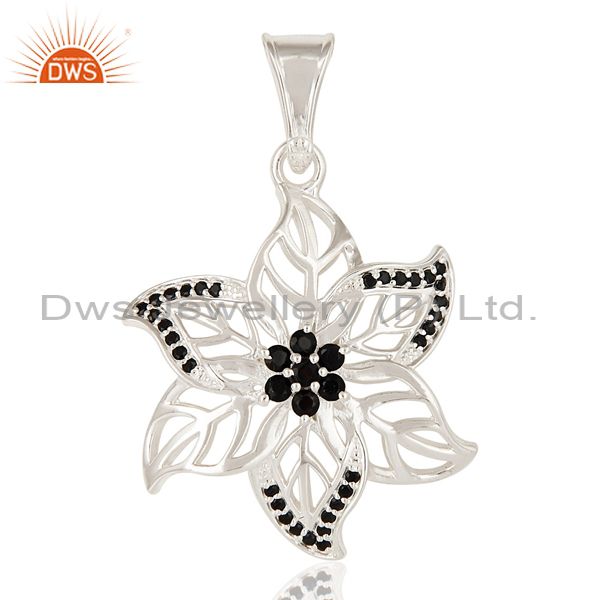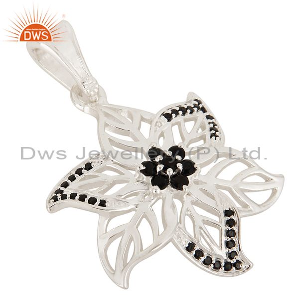 Natural Black Spinel Gemstone Sterling Silver Designer Leaf Pendant Jewelry