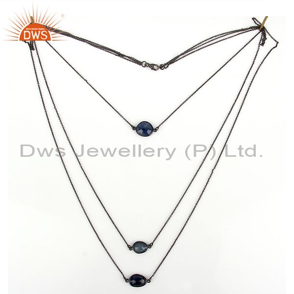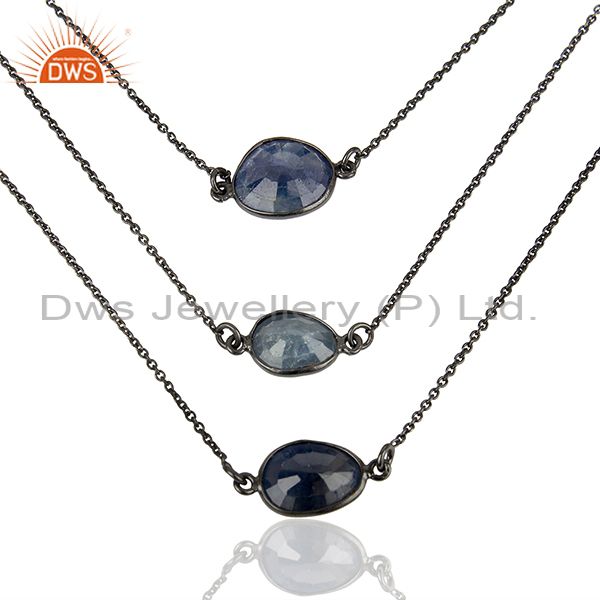 Natural Blue Sapphire Gemstone 925 Silver Chain Necklace Jewelry