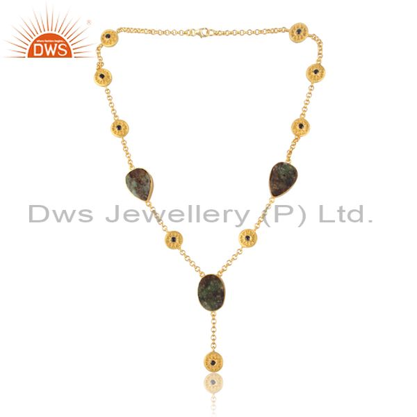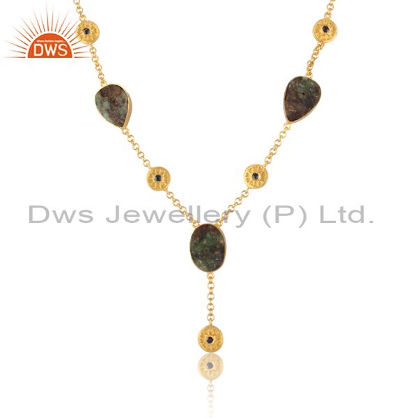 Natural Chrysoprase 925 Sterling Silver Gold Plated Blue Sapphire Necklace