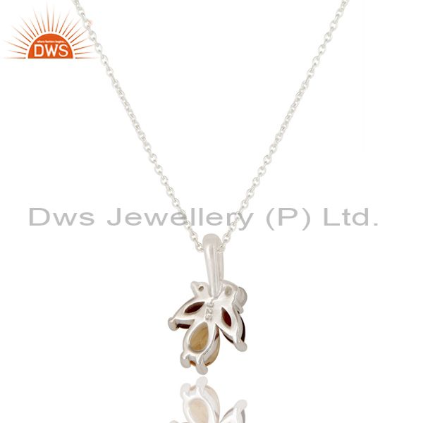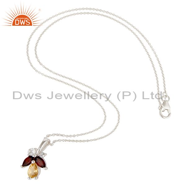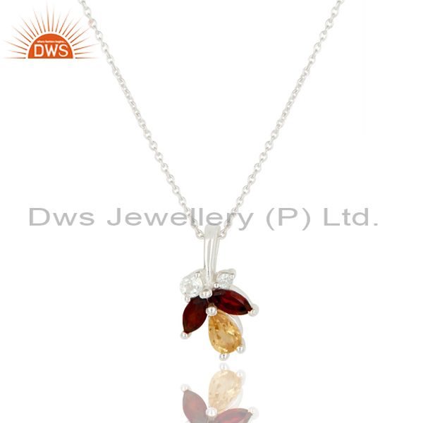 Natural Citrine, Garnet & White Topaz 925 Sterling Silver Chain Pendant Necklace