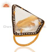 Natural Clear Quartz Crystal Prong Setting Pendant Necklace - Gold Plated Silver