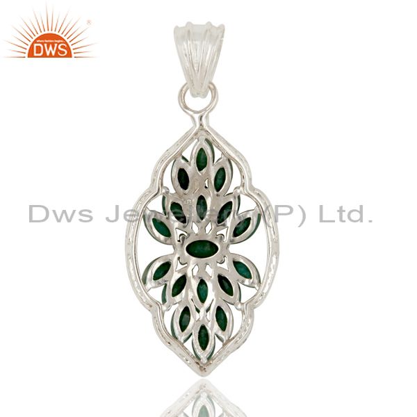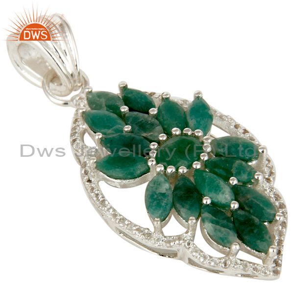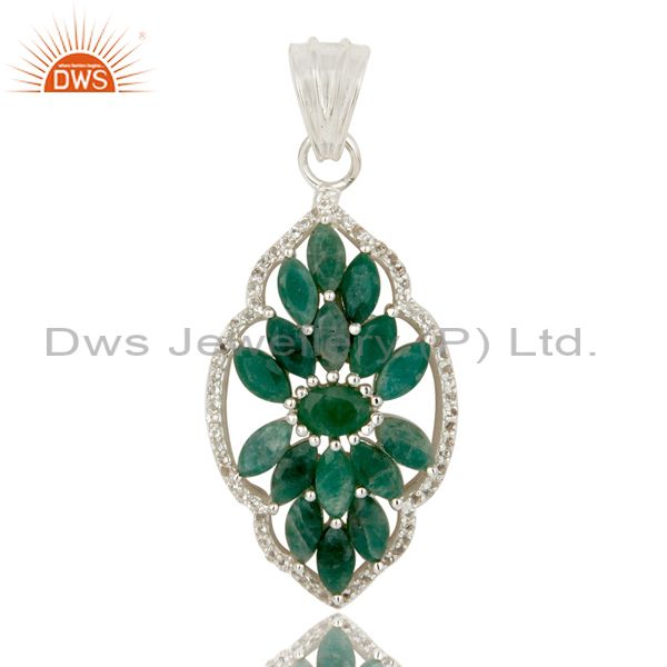Natural Emerald and White Topaz 925 Silver Gemstone Pendant Necklace Jewelry