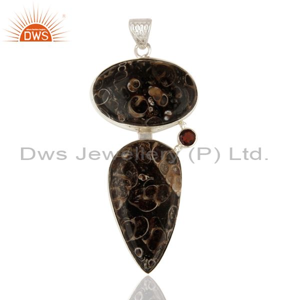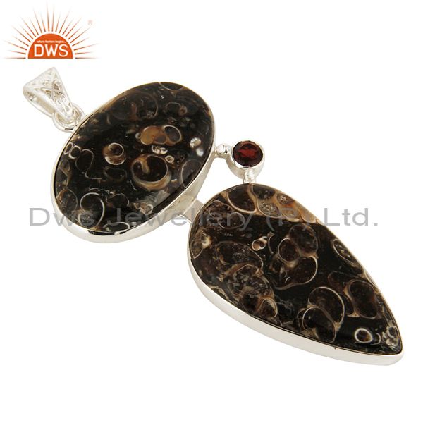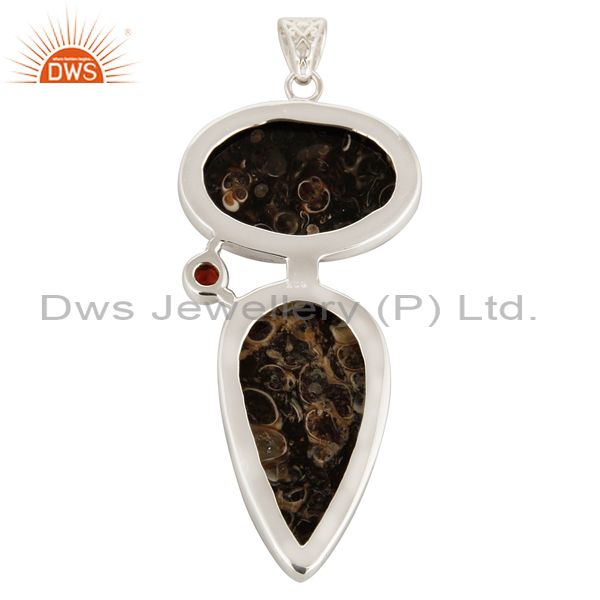 Natural Garnet And Turritella Agate Sterling Silver Pendant