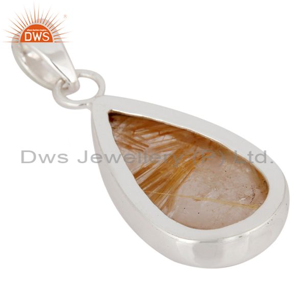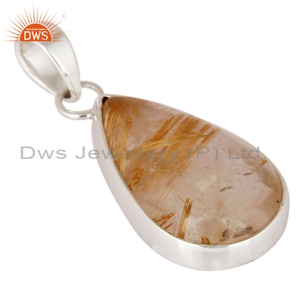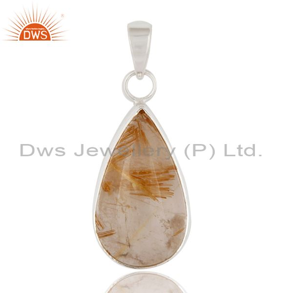 Natural Golden Rutilated Quartz 925 Sterling Silver Bezel-Set Gemstone Pendant