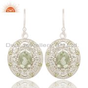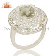 Natural Green Amethyst And Peridot Sterling Silver Pendant White Topaz