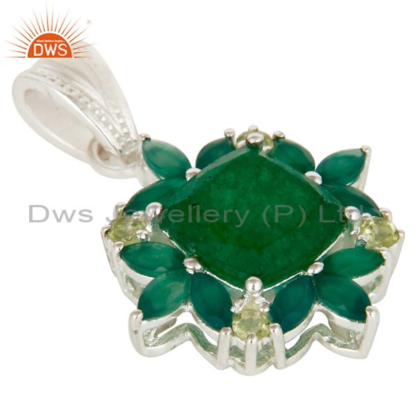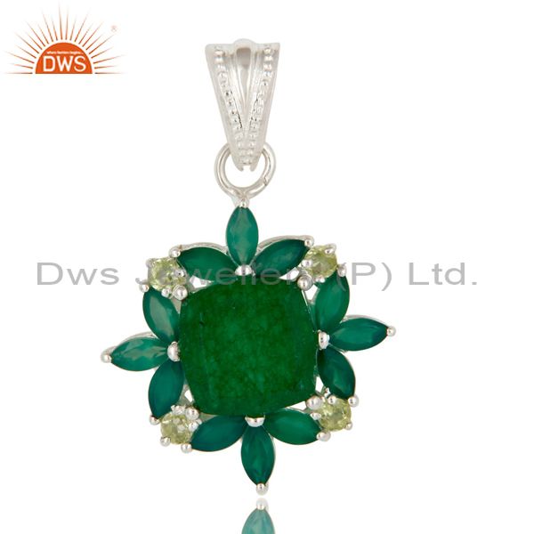 Natural Green Aventurine And Peridot Sterling Silver Gemstone Cluster Pendant