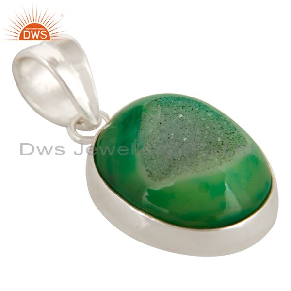 Natural Green Druzy Agate Sterling Silver Bezel Setting Handmade Pendant