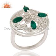 Natural Green Onyx 925 Sterling Silver Unique Design Pendant With White Topaz