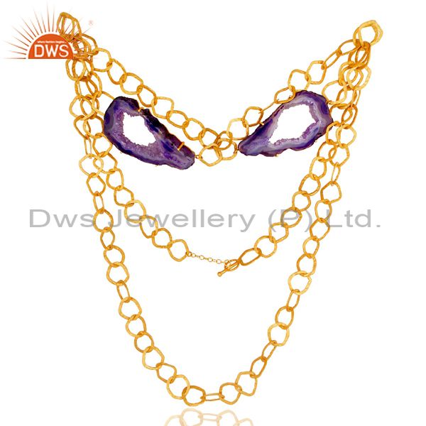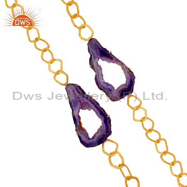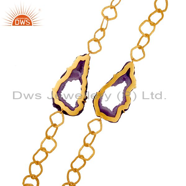Natural Hole Druzy 18K Gold Plated Necklace Handmade Link Chain Fashion Jewelry
