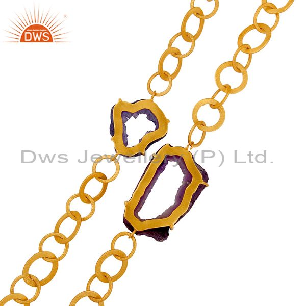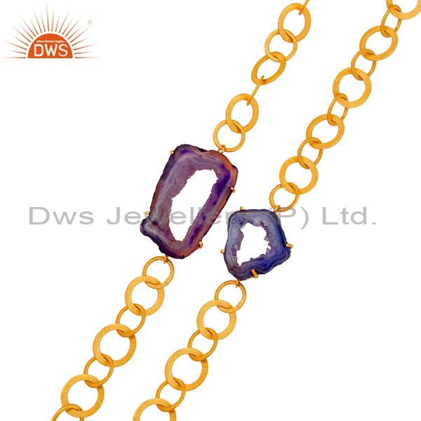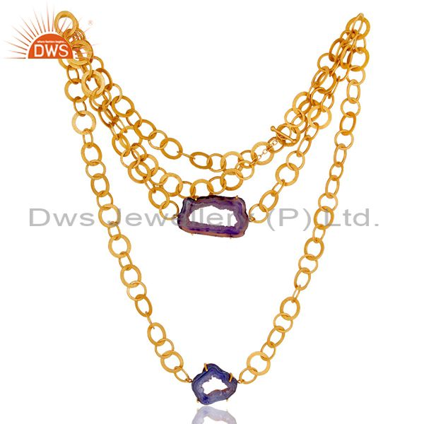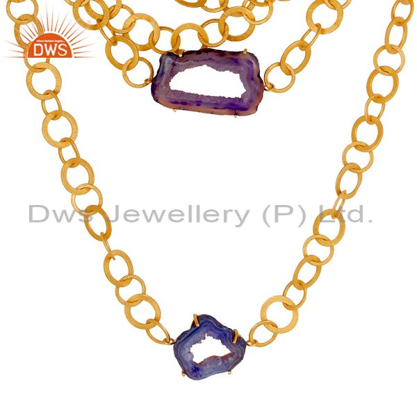 Natural Hole Druzy 18K Gold Plated Necklace with Link Chain Fashion Jewelry