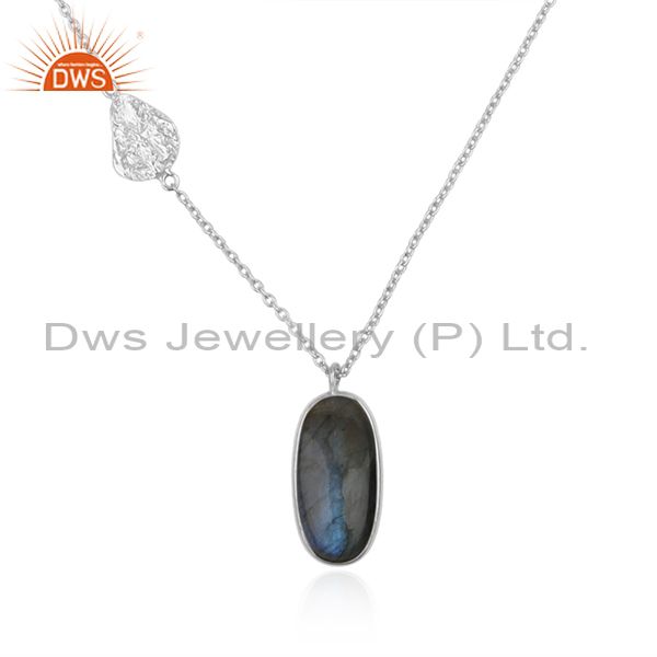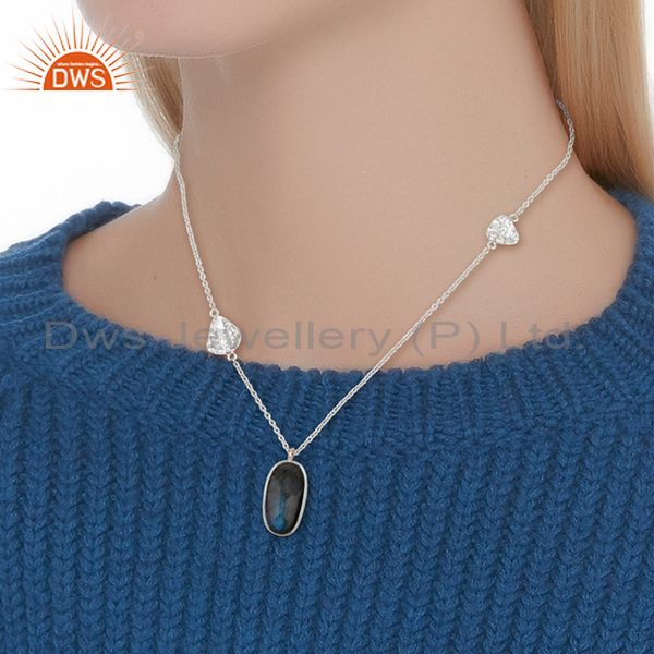 Natural Labradorite Gemstone Fine Sterling Silver Chain Pendant