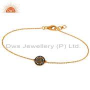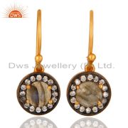 Natural Labradorite Gemstone Pave Cz Gold Plated Sterling Silver Pendant Chain