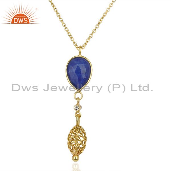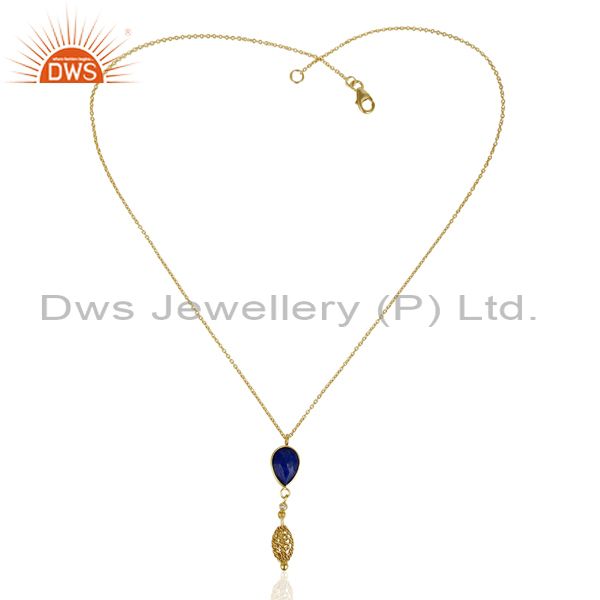 Natural Lapis 14K Gold Plated Filigree 92.5 Sterling Silver Pendent