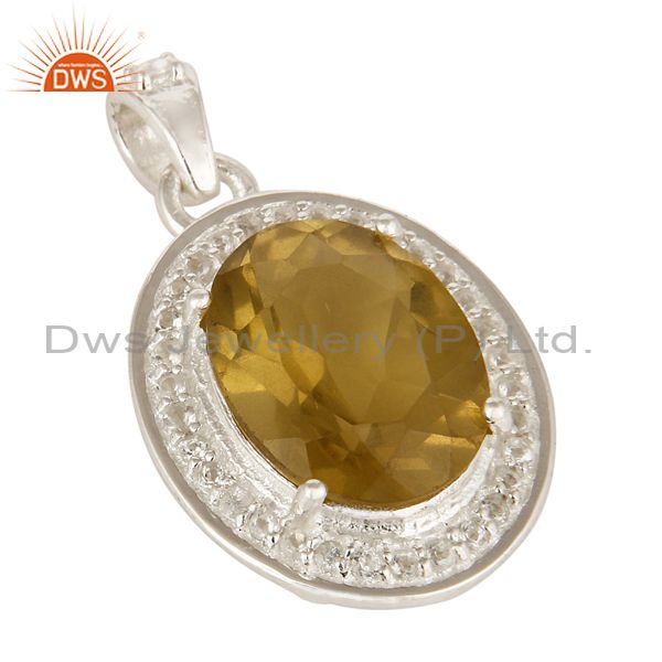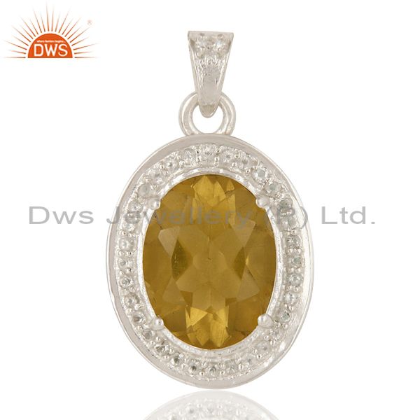 Natural Lemon Topaz And White Topaz Gemstone Designer Pendant In Sterling Silver