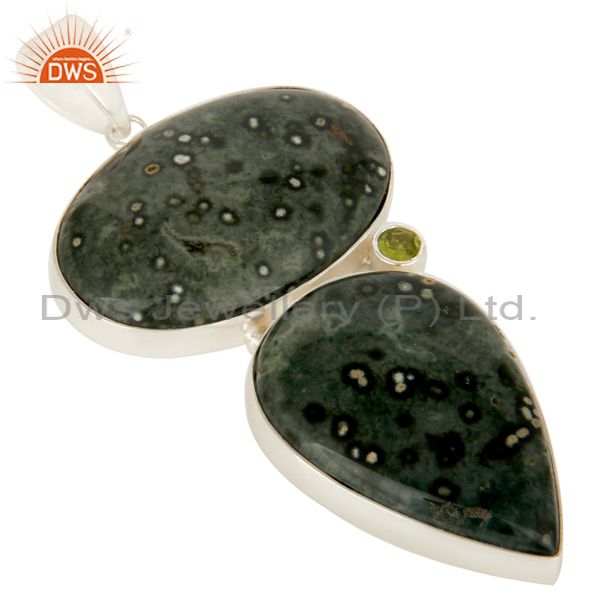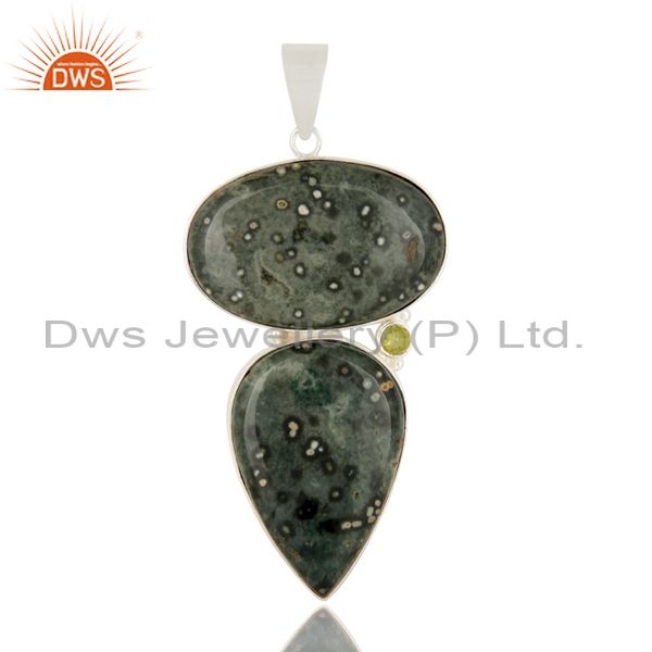 Natural Ocean Jasper And Peridot Gemstone Solid Sterling Silver Pendant