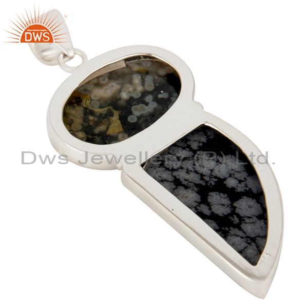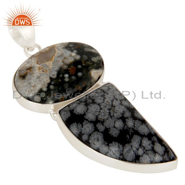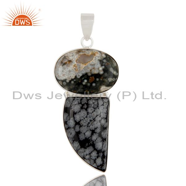 Natural Ocean Jasper And Snowflake Obsidian Solid 925 Sterling Silver Pendant