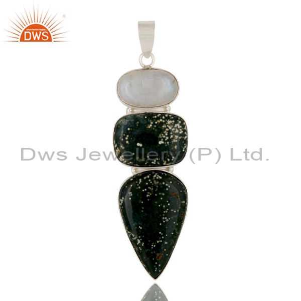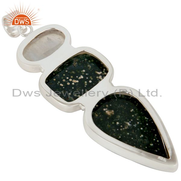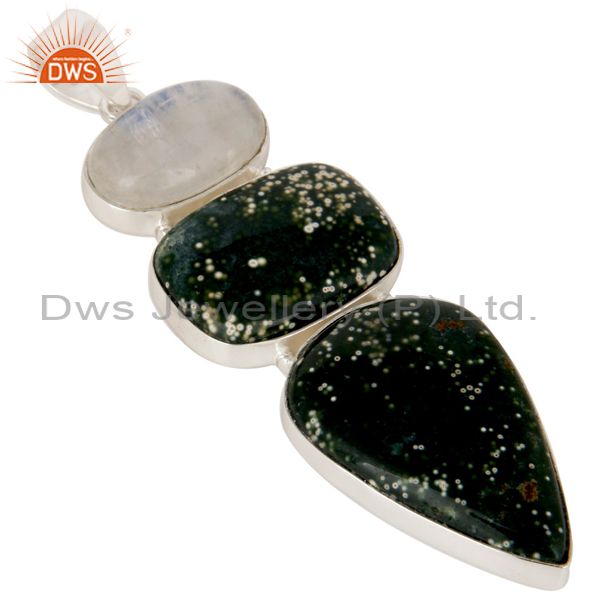 Natural Ocean Jasper And Snowflake Obsidian Solid Sterling Silver Pendant
