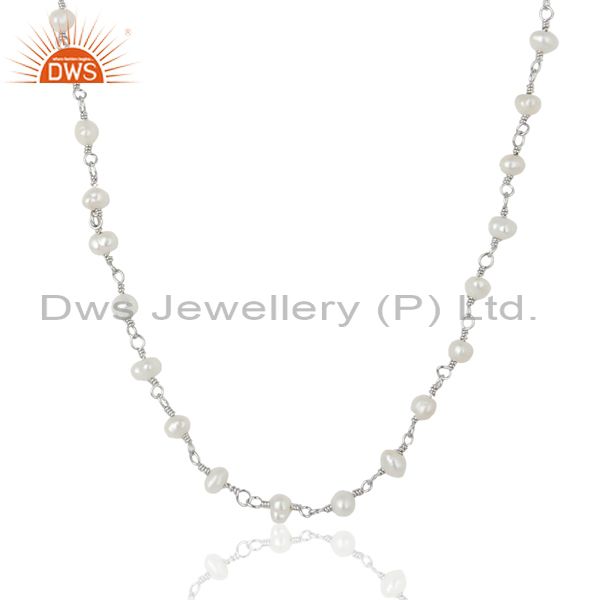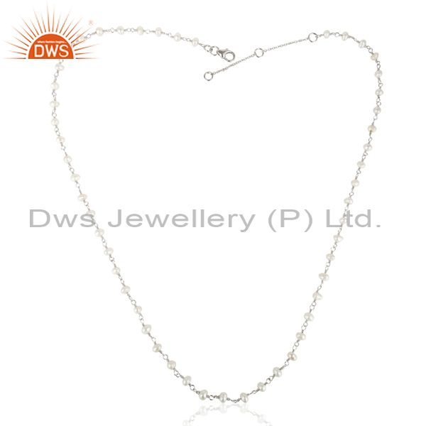 Natural Pearl White Rhodium 925 Sterling Silver Chain Necklace Jewelry