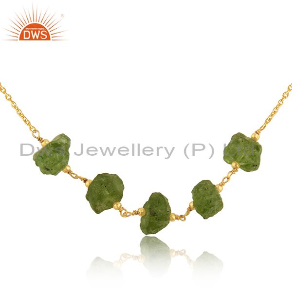 Natural Peridot Gemstone Designer Gold Plated Silver Necklace