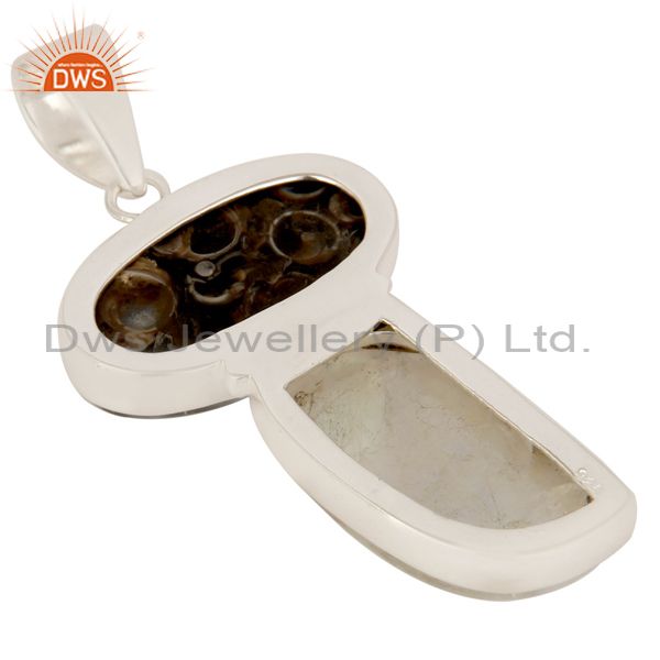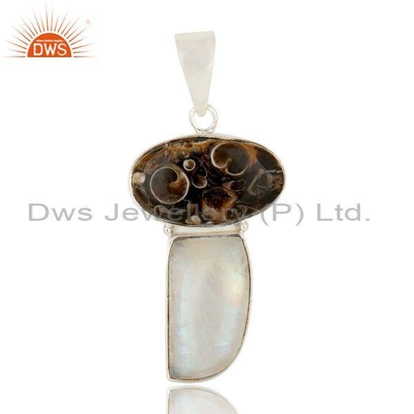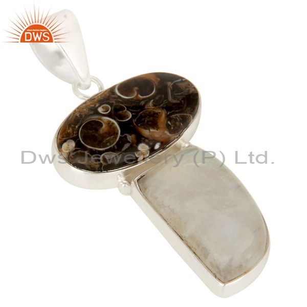 Natural Rainbow Moonstone And Turritella Agate Sterling Silver Gemstone Pendant