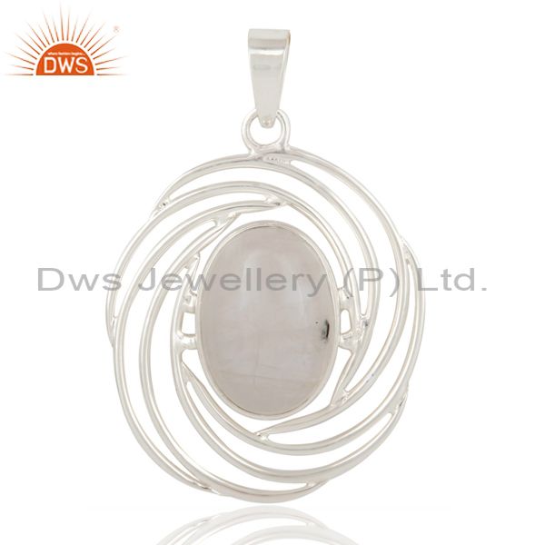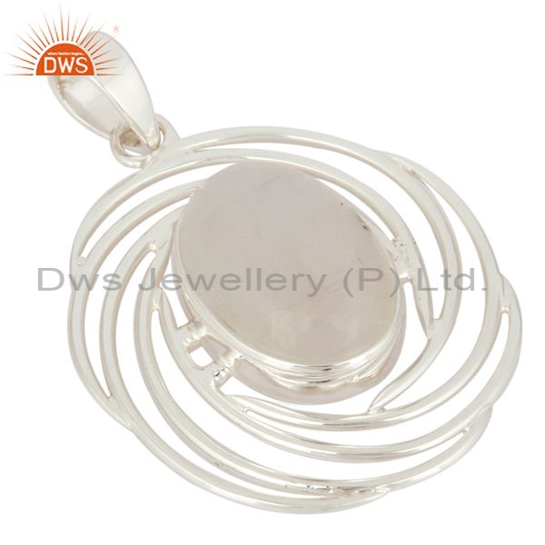 Natural Rainbow Moonstone Solid 925 Sterling Silver Handmade Pendant