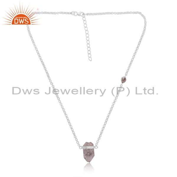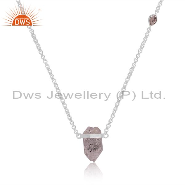 Natural Raw Herkimer Diamond Silver Chain Necklace