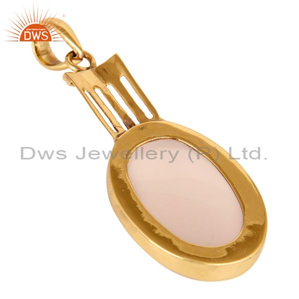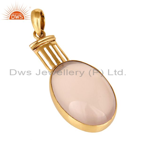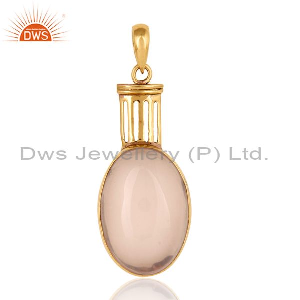 Natural Rose Quartz Gemstone Pendant - Yellow Gold Plated