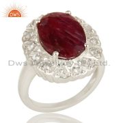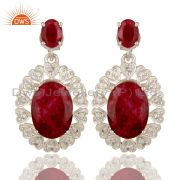 Natural Ruby Corundum Gemstone Sterling Silver Pendant With White Topaz