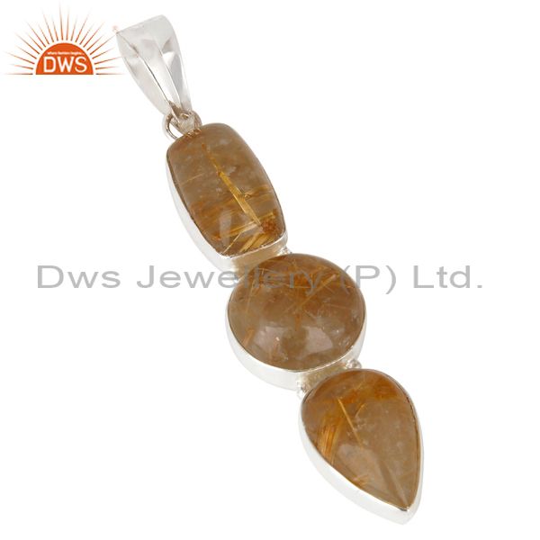 Natural Rutilated Quartz Gemstone Handmade 925 Sterling Silver Pendant Jewelry