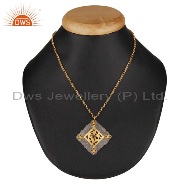 Natural Smoky Quartz 18K Gold Plated 925 Sterling Silver Chain Pendant Jewelry