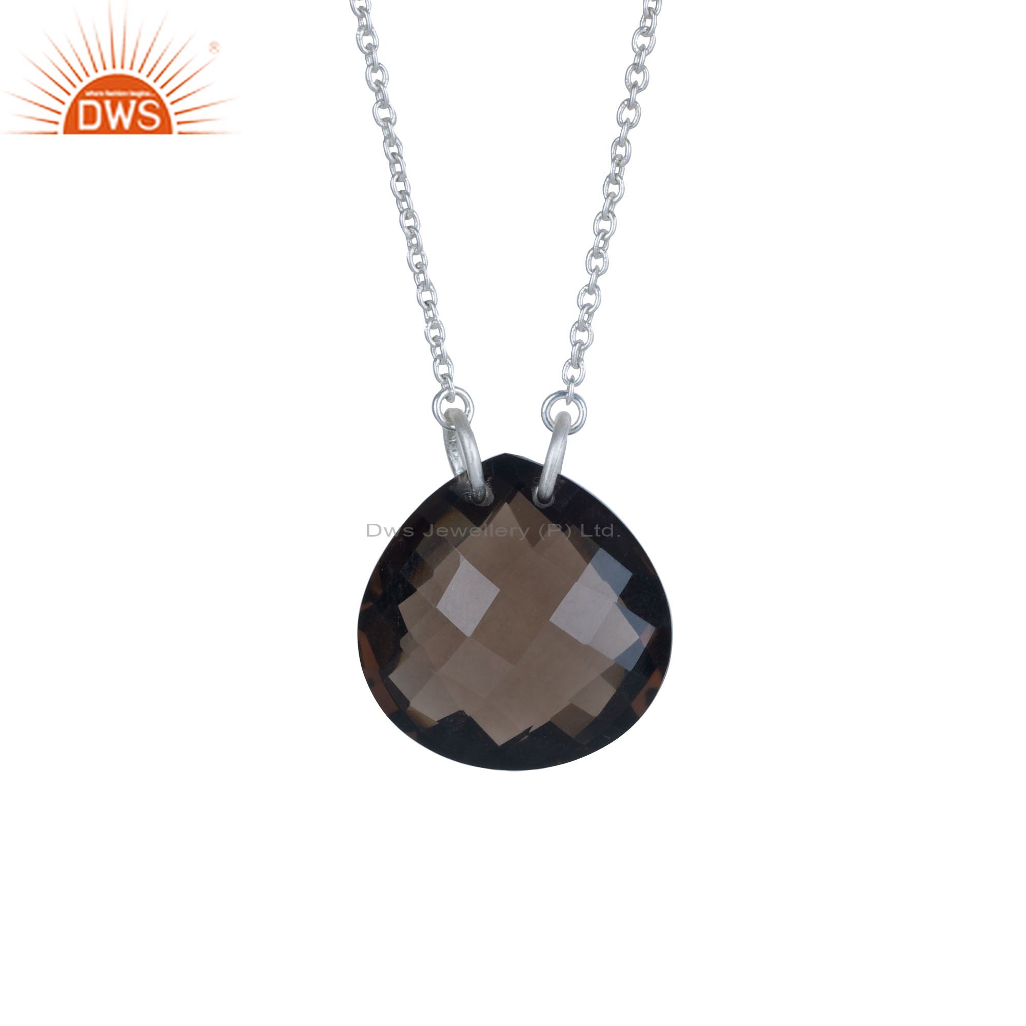 Natural Smoky Quartz Faceted Sterling Silver Gemstone Pendant Chain Necklace