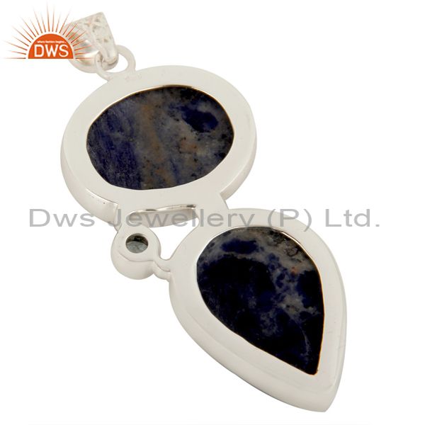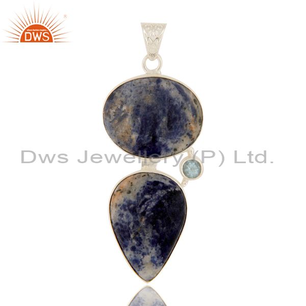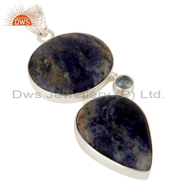 Natural Sodalite And Blue Topaz Gemstone Pendant Made In Solid Sterling Silver