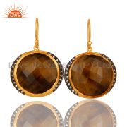 Natural Tiger Eye Gemstone Gold Plated Sterling Silver 925 Pendant With Chain