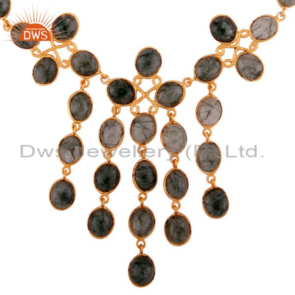 Natural Tourmalinated Quartz Semi Precious Stone 18K Gold Plated Necklace
