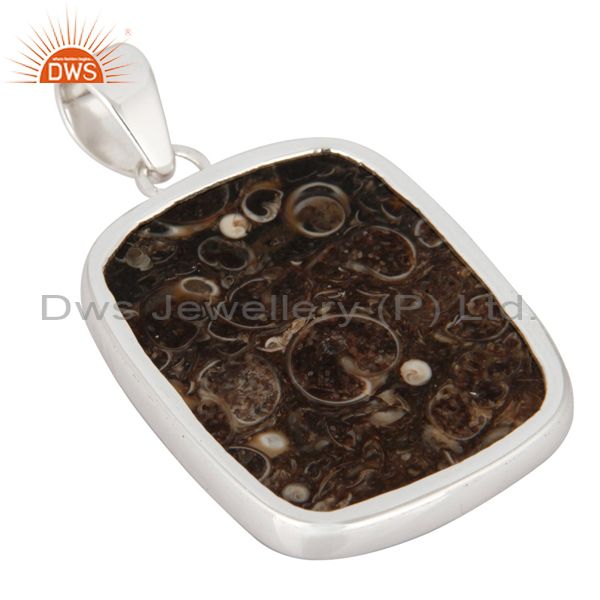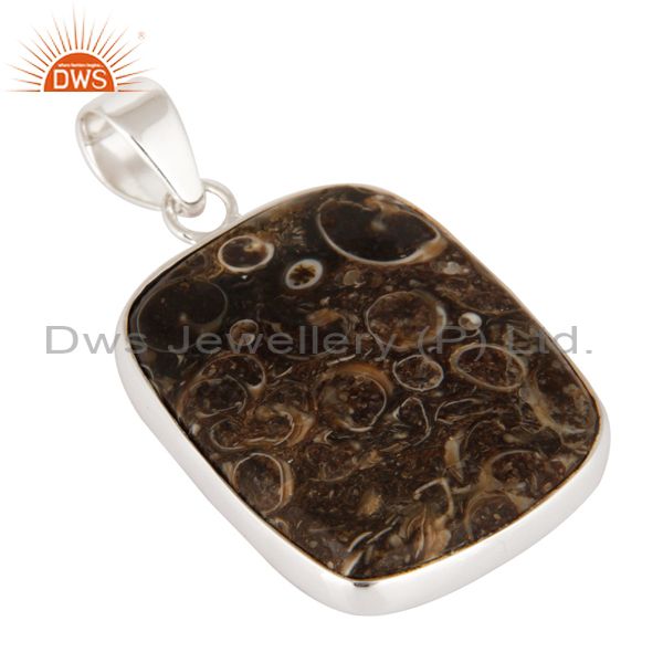Natural Turritella Agate 925 Sterling Silver Bezel-Set Gemstone Pendant