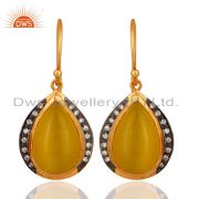 Natural Yellow Moonstone 925 Sterling Silver Gold Plated Pendant With Chain
