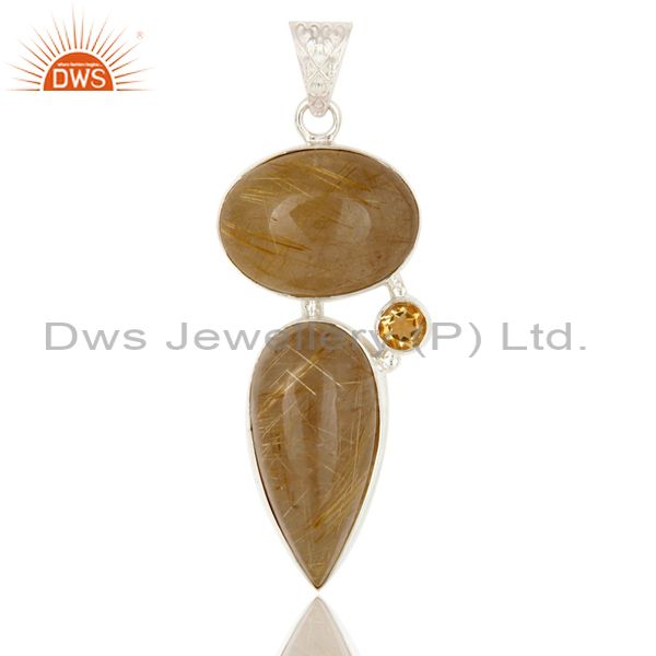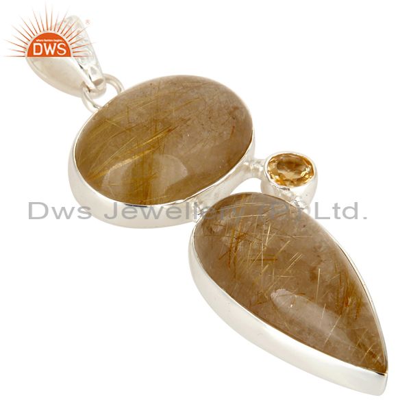 Natural Yellow Rutile And Citrine Gemstone Pendant Made In Solid Sterling Silver